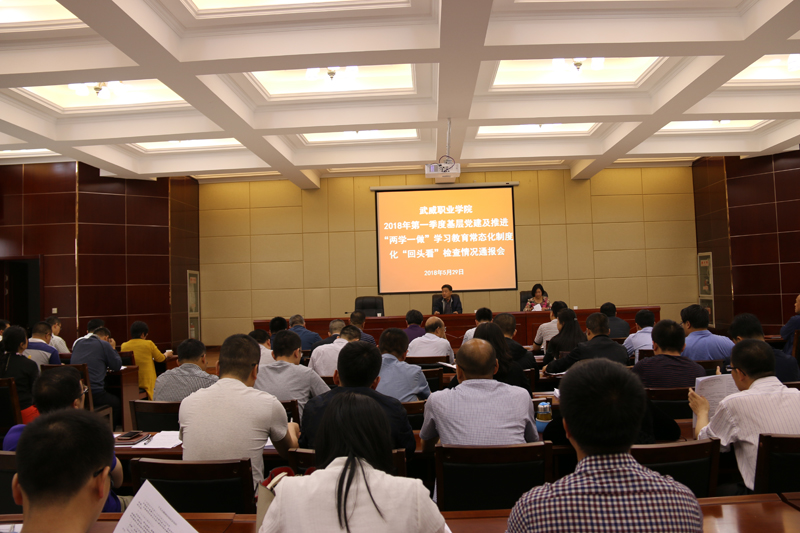 5月29日下午,學院在行樹樓北側會議室召開2018年第一季度基層黨建及推進“兩學一做”學習教育常態化制度化“回頭看”檢查情況通報會。各黨總支、直屬黨支部書記和各系下設黨支部書記、支委委員共90多人參加會議。會議由黨委副書記趙明主持,