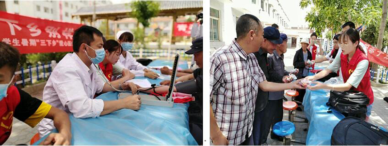 “醫路同行”愛心醫療服務團的隊員們充分發揚不怕苦、不怕累的拼搏精神,以飽滿的熱情對生活在那里的老人進行“流行性疾病、高血壓、高血糖”的知識宣傳,向廣大群眾介紹了夏季常見病的預防常識并發放防治疾病的宣傳手冊。同時為老人們免費測量血壓、血糖并填寫詳細的調查統計資料,免費發放傷風感冒、開胃消食、消炎止痛、防暑降溫等家庭必備常用藥品。隊員們的良好形象、熱情的服務、專業的素養,受到了當地村民的高度評價和認可。