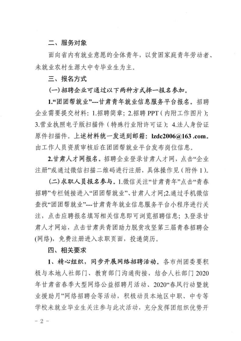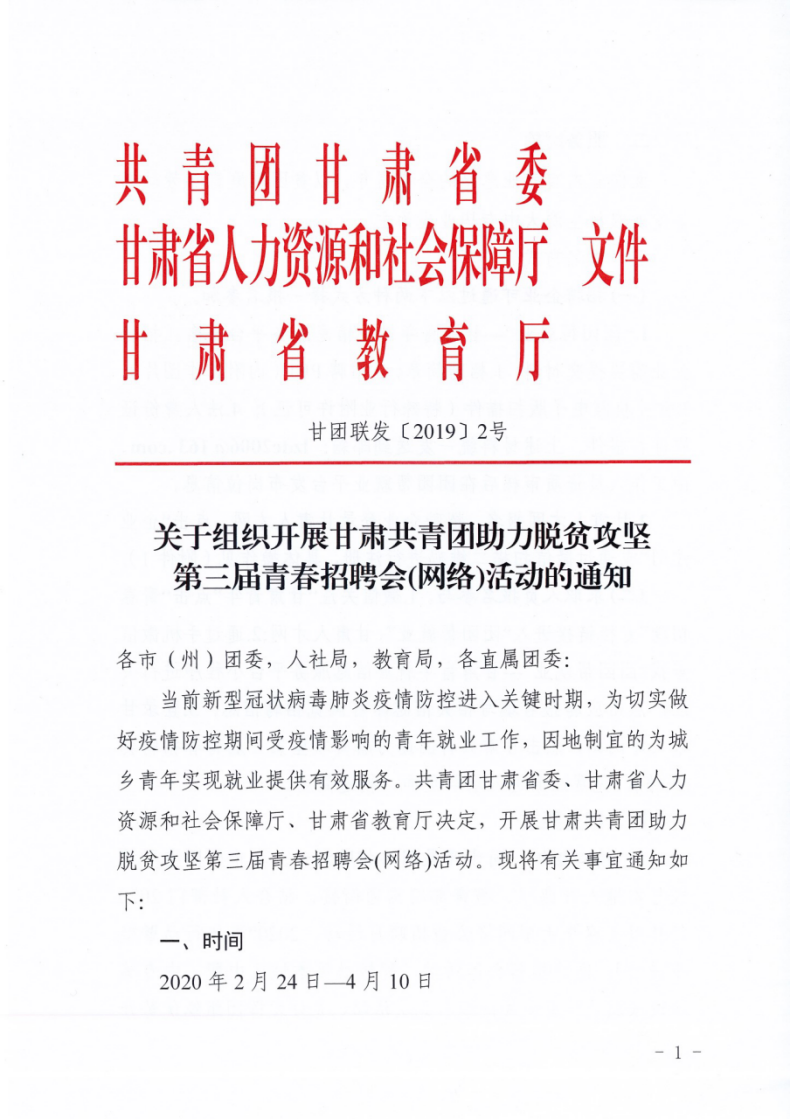 關于組織開展甘肅共青團助力脫貧攻堅第三屆青春招聘會(網絡)活動的通知