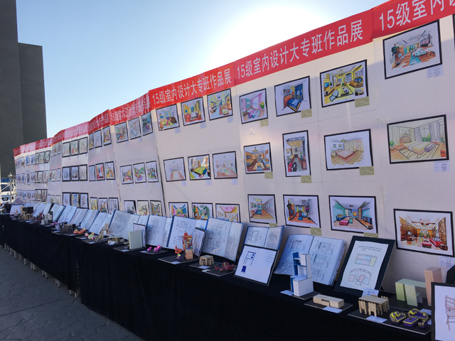 此次展覽共計展出作品1000余件,由學前教育、室內設計和數字媒體3個專業學生共同展出,涉及到裝飾畫、平面構成、立體構成、家具陳設、室內設計制圖與手繪效果表現等6門課程,作品內容豐富,形式多樣,充分展示了學生們的藝術創作風采。