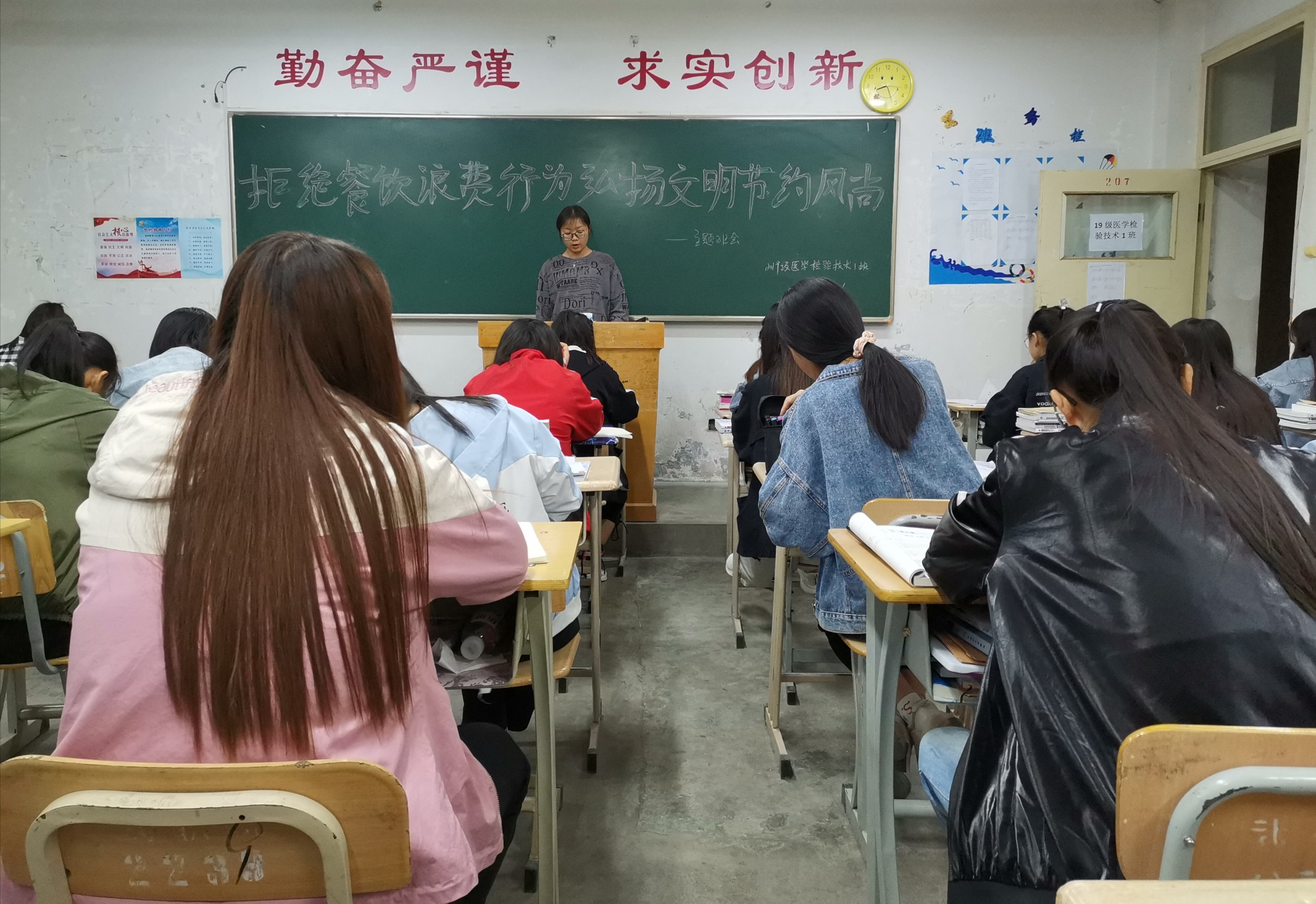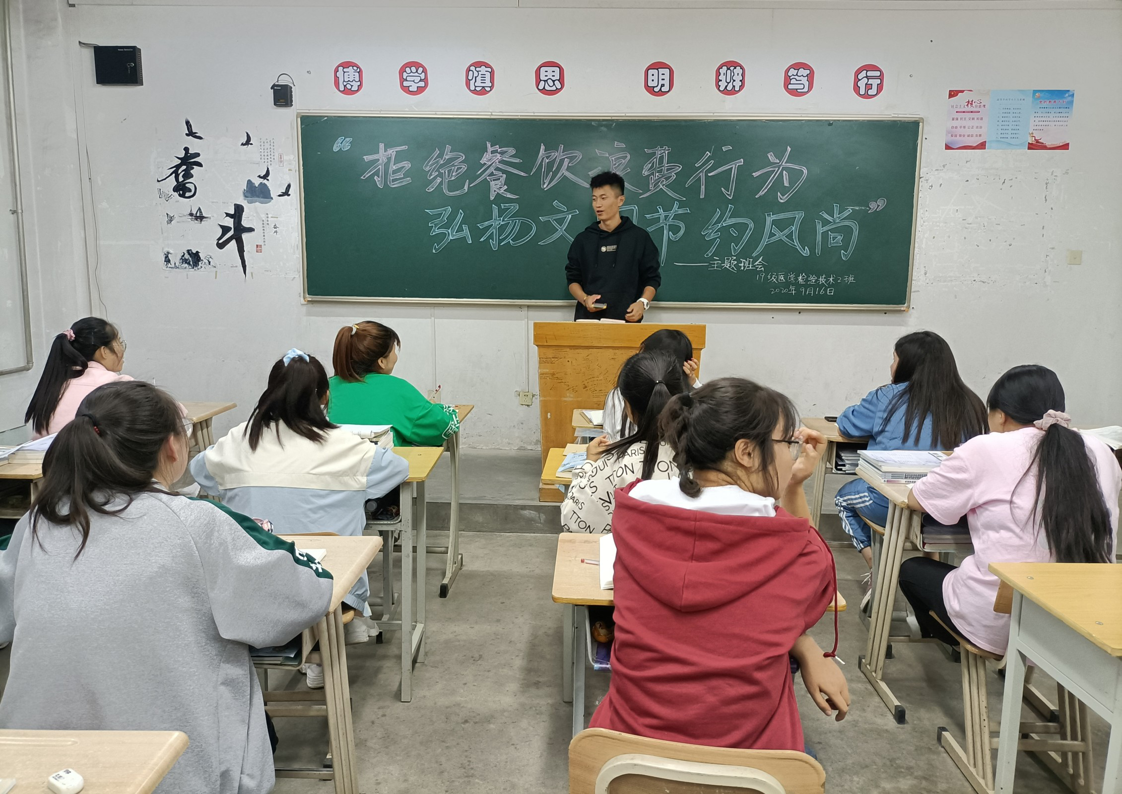 為深入貫徹落實習近平總書記關于制止餐飲浪費行為的重要指示精神,確保“光盤行動”取得實效,進一步引導我系學生大力弘揚勤儉節約傳統美德,培養勤儉節約良好習慣,全力營造“浪費可恥、節約光榮”的濃厚氛圍,醫學技術與信息管理系于9月16日各教學班召開主題班會活動。