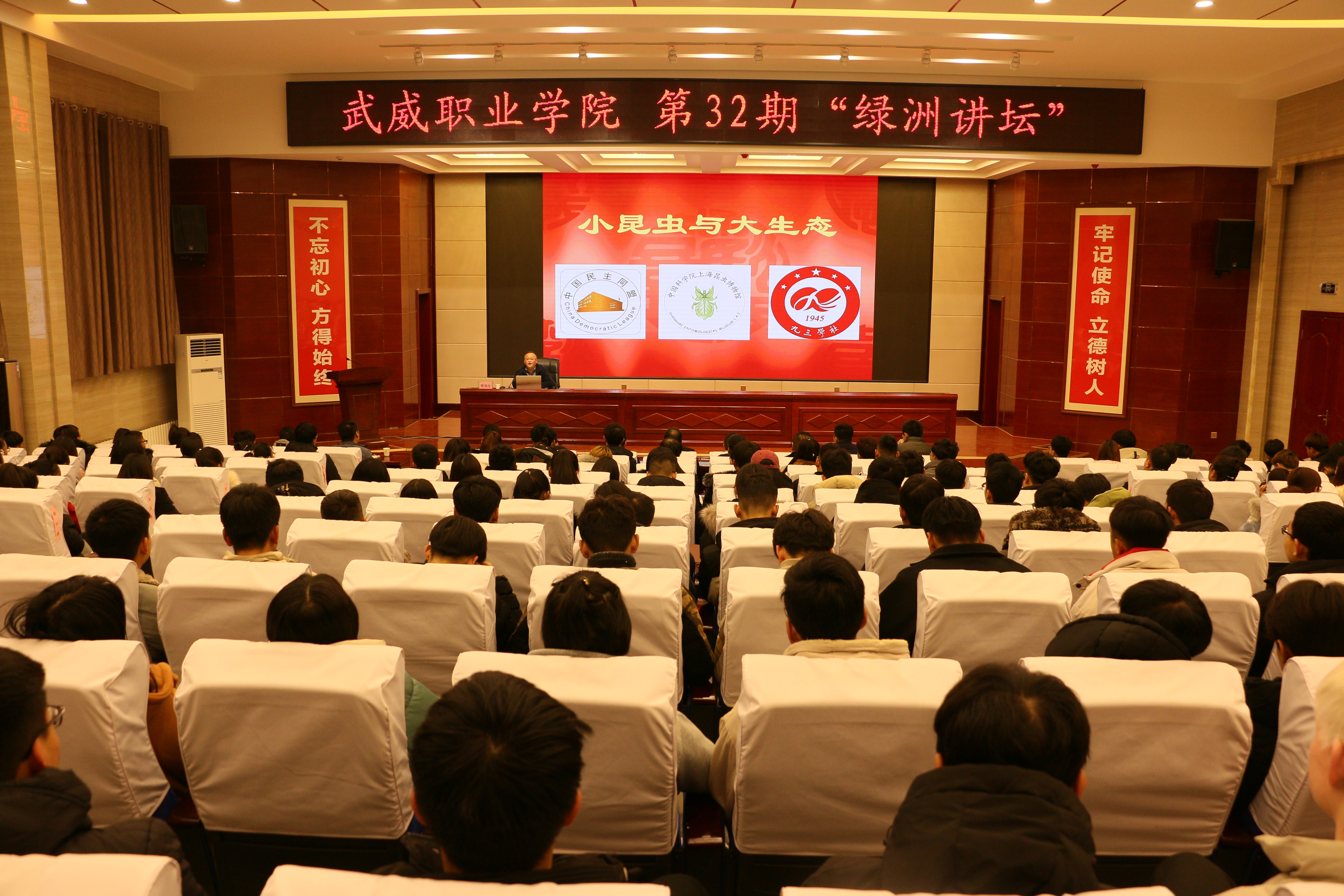 12月18日,武威職業學院“綠洲講壇”第32期在學院菁英廳舉行,本期活動邀請到中國科學院上海昆蟲博物館館長殷海生教授作主題為“小昆蟲與大生態”的報告。學院現代農業技術系相關專業學生、中科低碳新能源技術學院師生代表共220人聆聽了報告。本期講壇由能源工程系黨總支書記胡建宏主持。