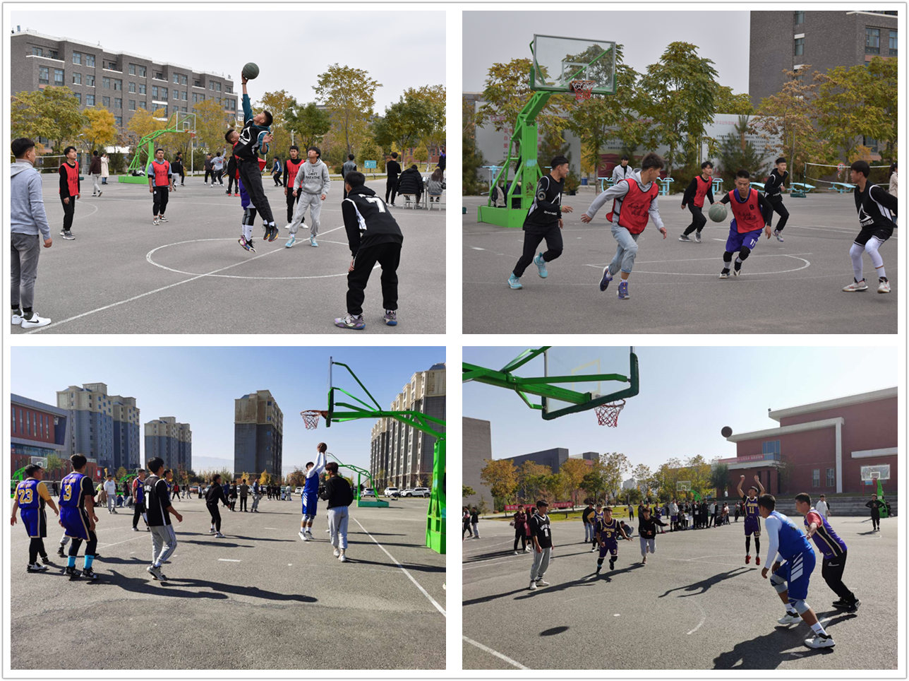籃球比賽共有12支隊伍參加比賽,在賽場上運動員積極拼搏、全力以赴。場下的同學們努力為運動員吶喊助威,為運動員們注入了強大的精神動力。