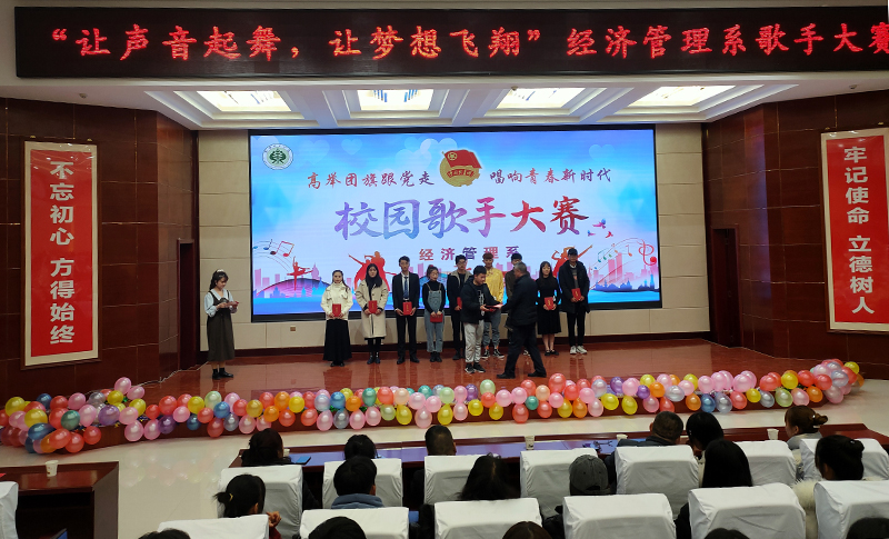11月23日晚,經濟管理系“讓聲音起舞、讓夢想飛翔”校園歌手大賽總決賽在學院箐英廳隆重舉行。黨總支書記潘從民、主任張伯成蒞臨總決賽現場,2020年甘肅省職業院校教學能力比賽二等獎獲得者晉藝波、許春華、張海燕、張語悅、金玉清老師,會計教研室主任張亞鵬,受邀擔任了總決賽的評委。經濟管理系師生代表200余人一起品味青春、感受激情,共同享受了一場精彩的視聽盛宴。
