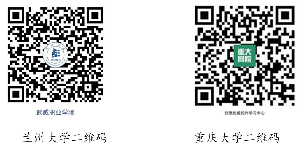 2.蘭州大學、重慶大學網絡教育報名老師電話(劉老師:18993563255)。疫情期間,為減少人員接觸,選擇報考蘭州大學、重慶大學的學員可通過二維碼預報名,預報名后等報名人員電話通知后再來學校進行信息確認和提交報名材料