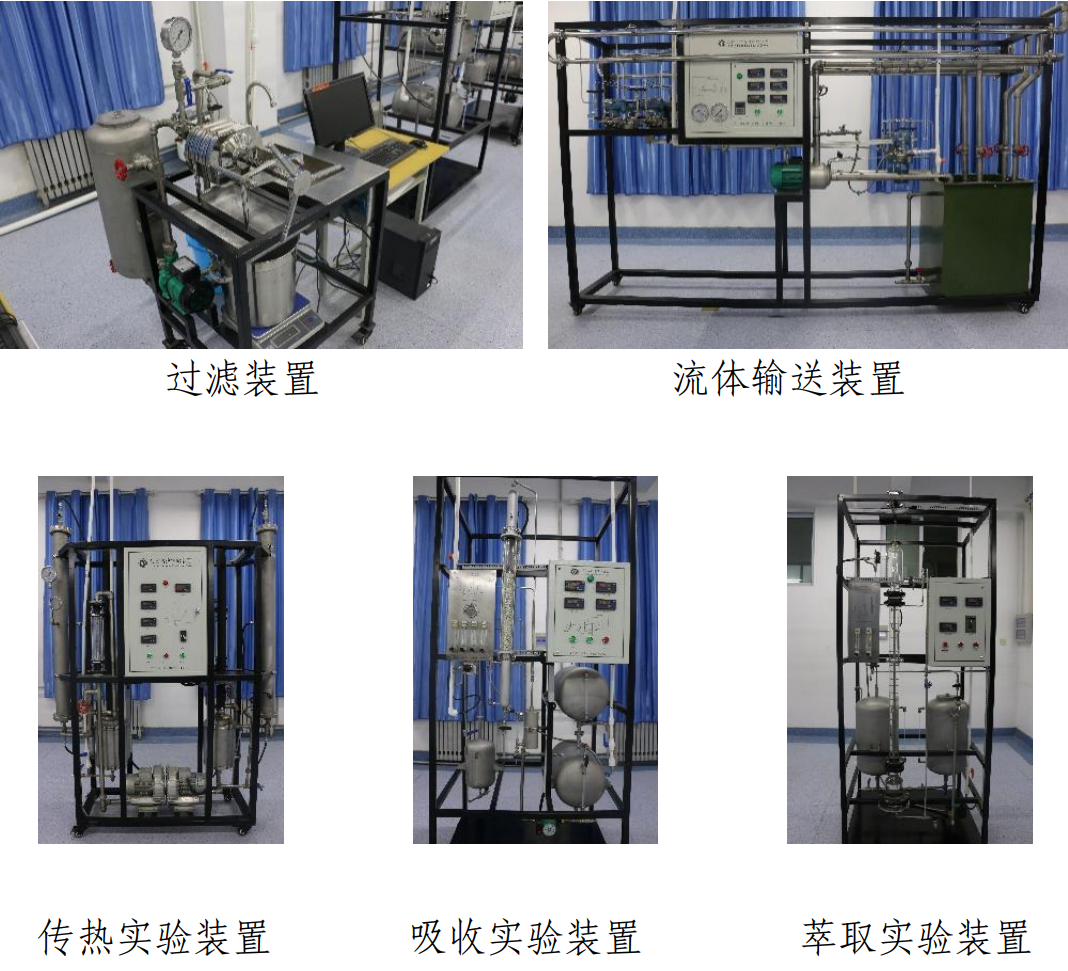 實驗室主要儀器設備有流體力學綜合實驗裝置、流化床干燥實驗裝置、過濾裝置、萃取裝置、吸收裝置、傳熱裝置、單釜與三釜串聯返混性能測定實驗設備、變壓吸附氣體分離實驗設備,通過實驗實訓使學生了解典型化工設備的結構和原理、掌握化工設備的操作步驟,規范使用方法,培養學生的工程觀念、分析和解決實際問題的能力。