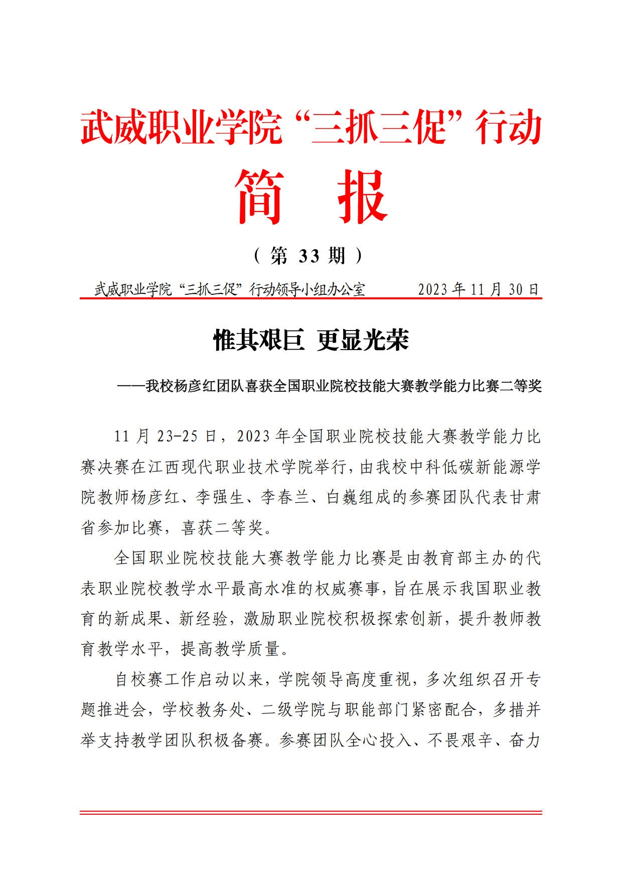 簡報第33期:惟其艱巨 更顯光榮