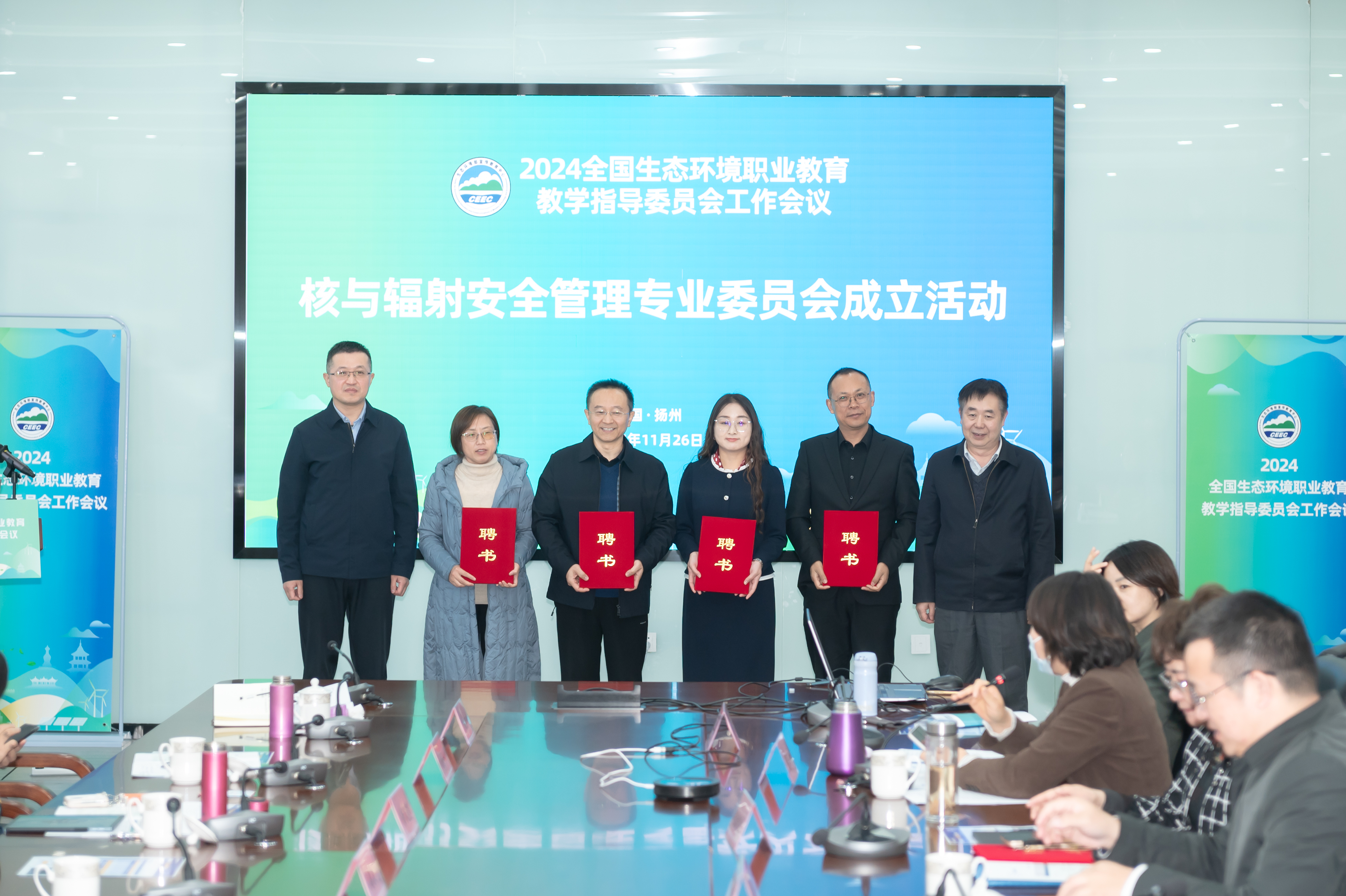 11月26日,全國生態環境職業教育教學指導委員會(簡稱“生態環境行指委”)2024年工作會議在江蘇省揚州市召開,宣布生態環境行指委下設4個專委會,包括環境治理技術、環境管理、碳排放管理、核與輻射安全管理專業委員會,宣布我校為全國生態環境職業教育教學指導委員會核與輻射安全管理專業委員會主任委員單位。