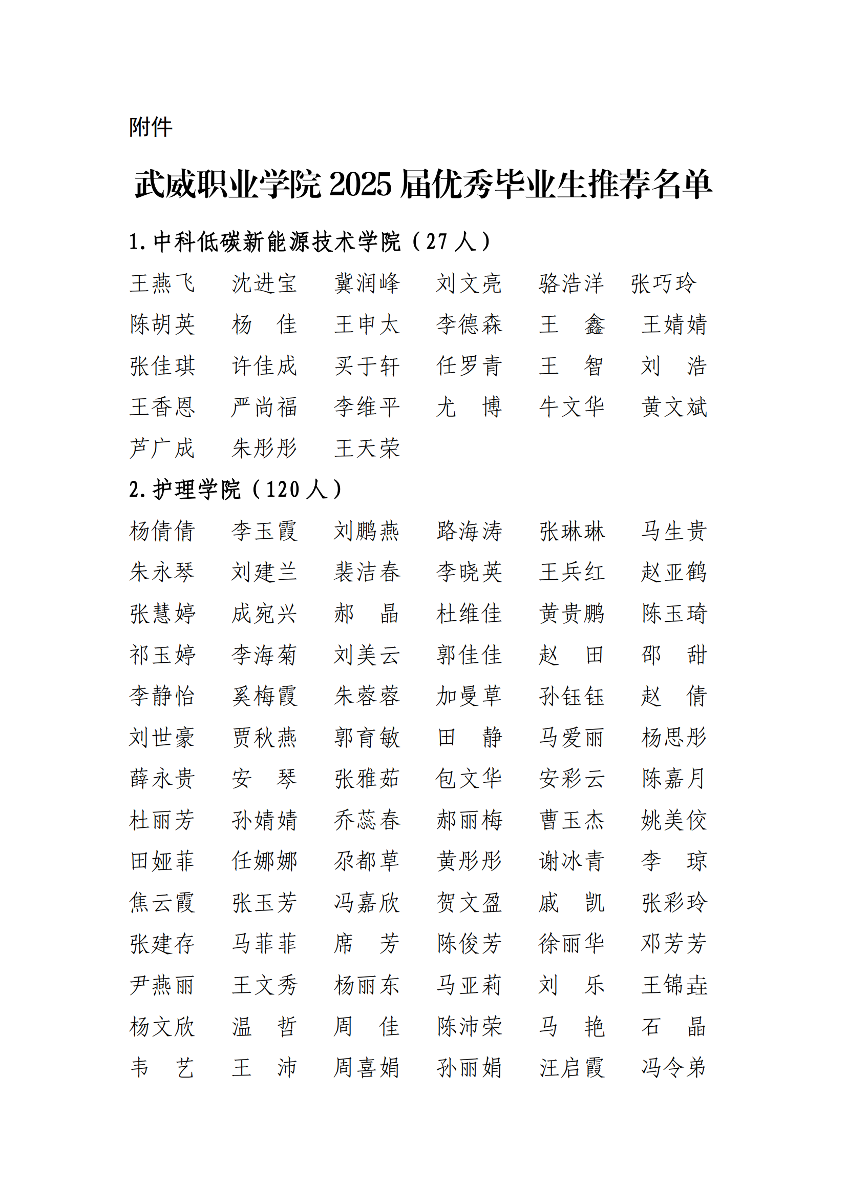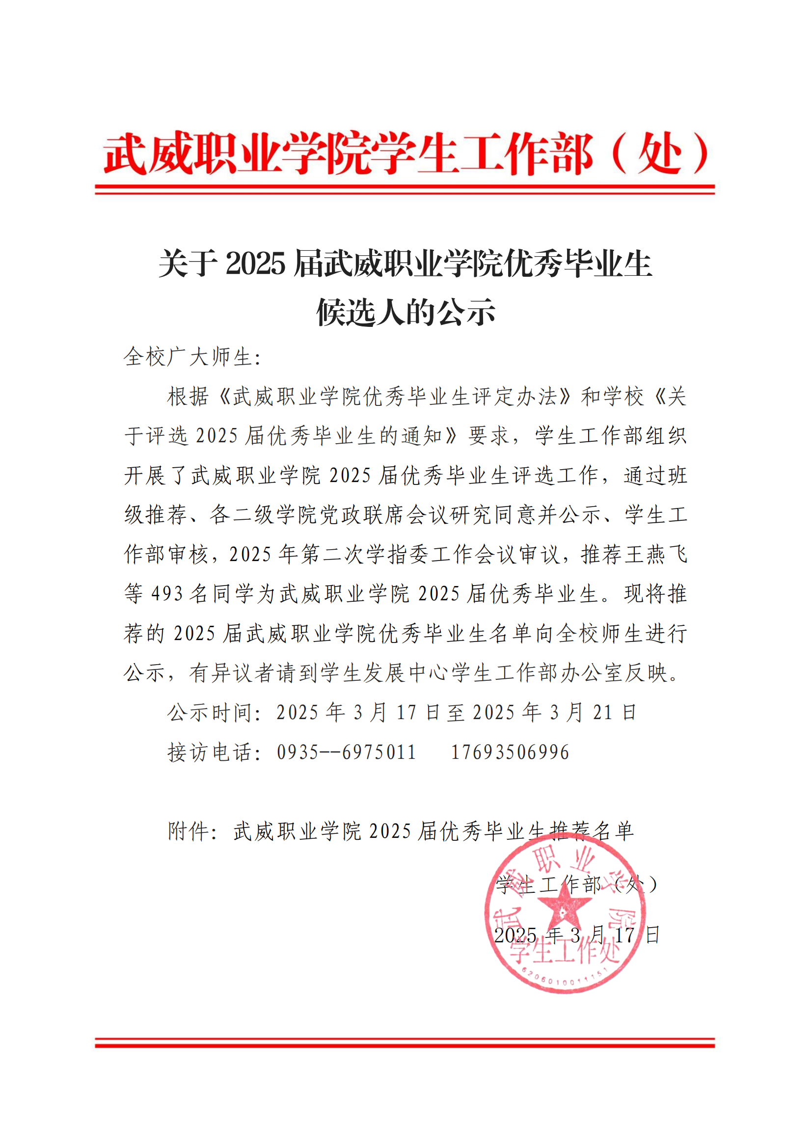 關于2025屆武威職業學院優秀畢業生候選人的公示