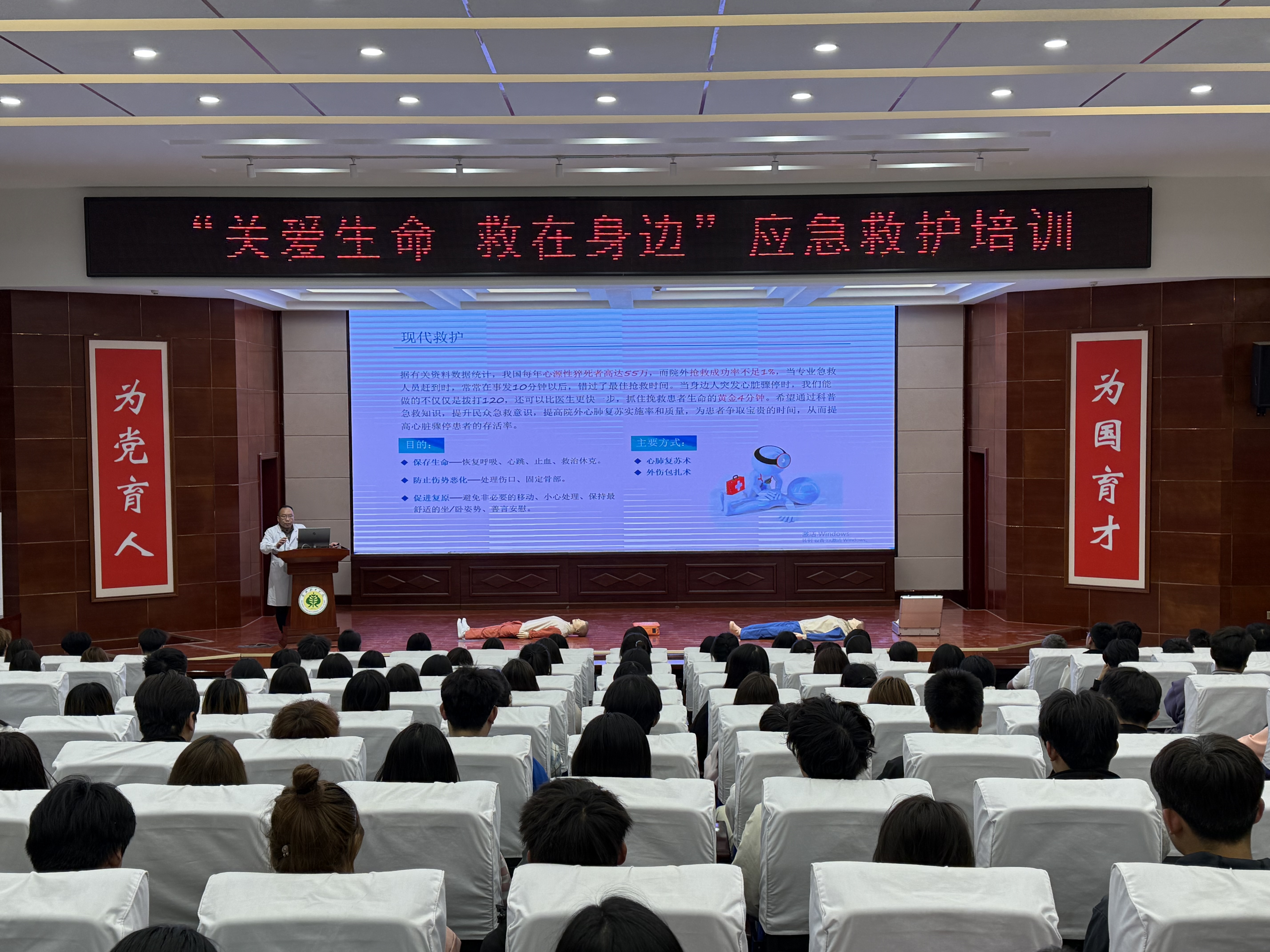 為普及急救知識,提升學生應急救護能力,4月17日下午,校團委聯合武威市人民醫院在學校菁英廳舉辦“關愛生命 救在身邊”專題培訓,200余名學生參與學習?;顒油ㄟ^“理論+實操”形式,系統教授學生心肺復蘇、氣道異物急救等技能,助力平安校園建設。