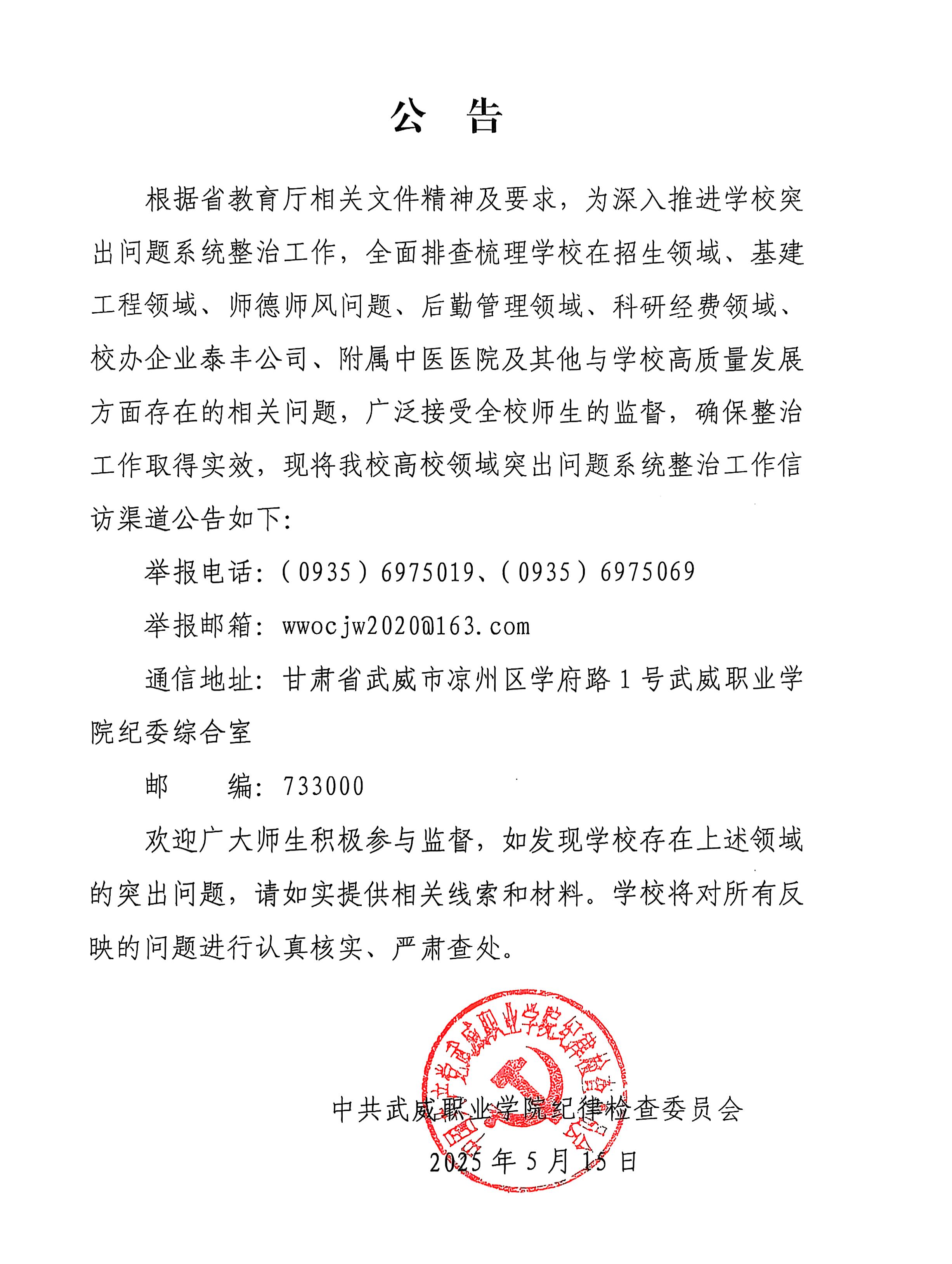 歡迎光臨武威職業(yè)學院 紀委(監(jiān)察專員辦公室)綜合室! 今天是: