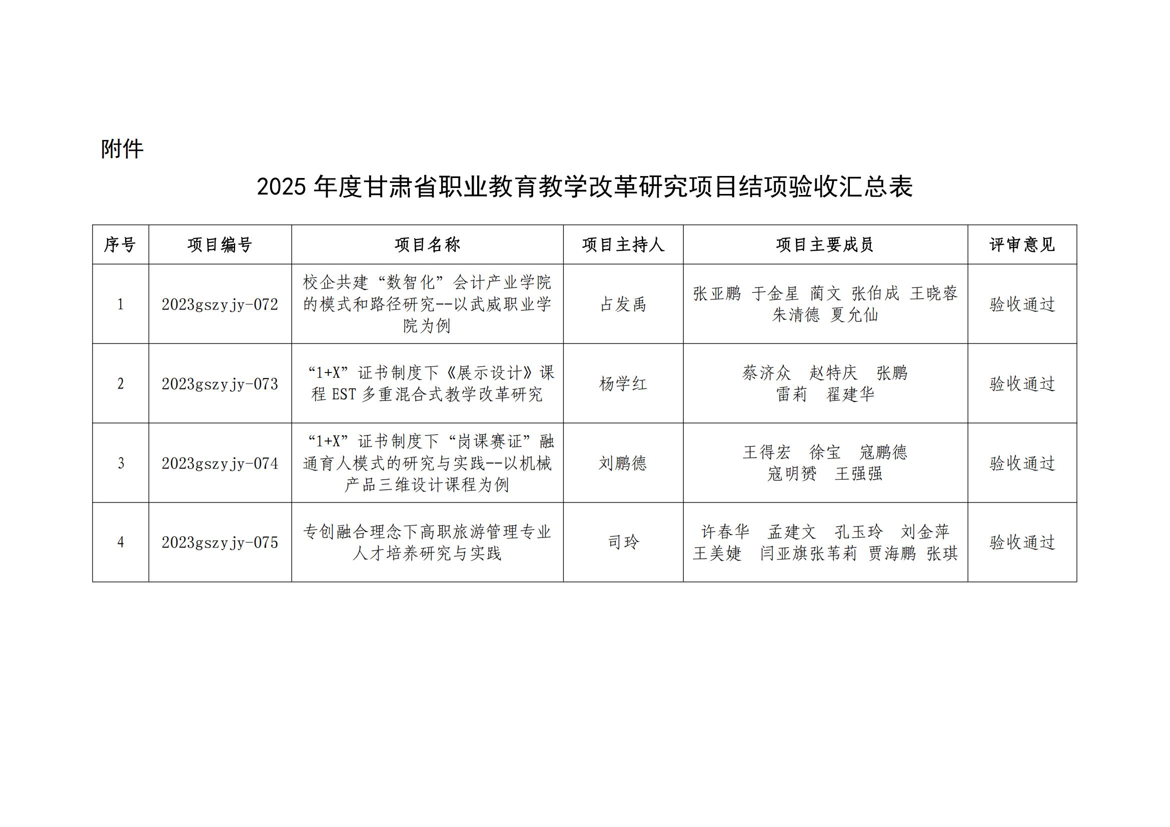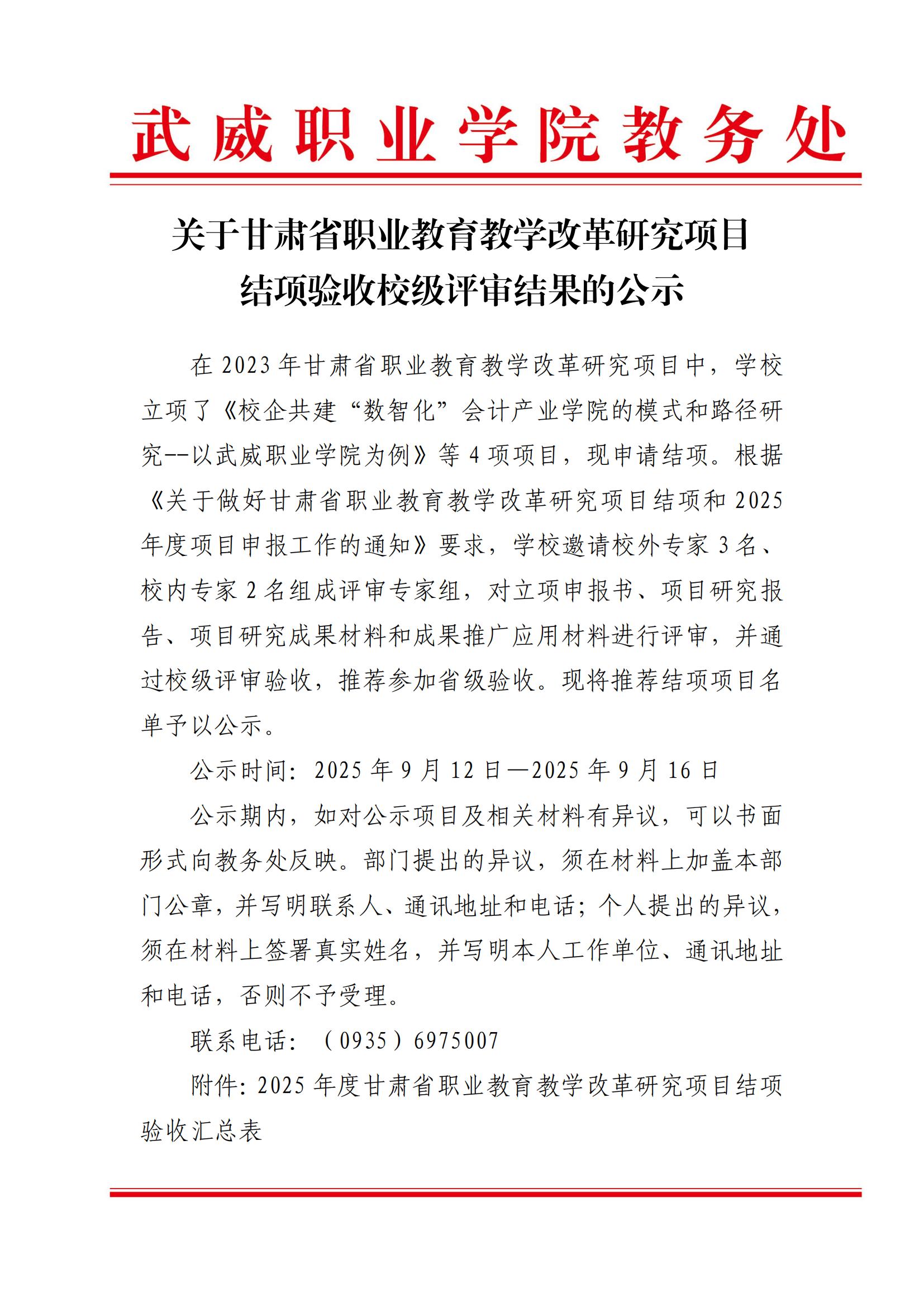 關于甘肅省職業教育教學改革研究項目結項驗收校級評審結果的公示
