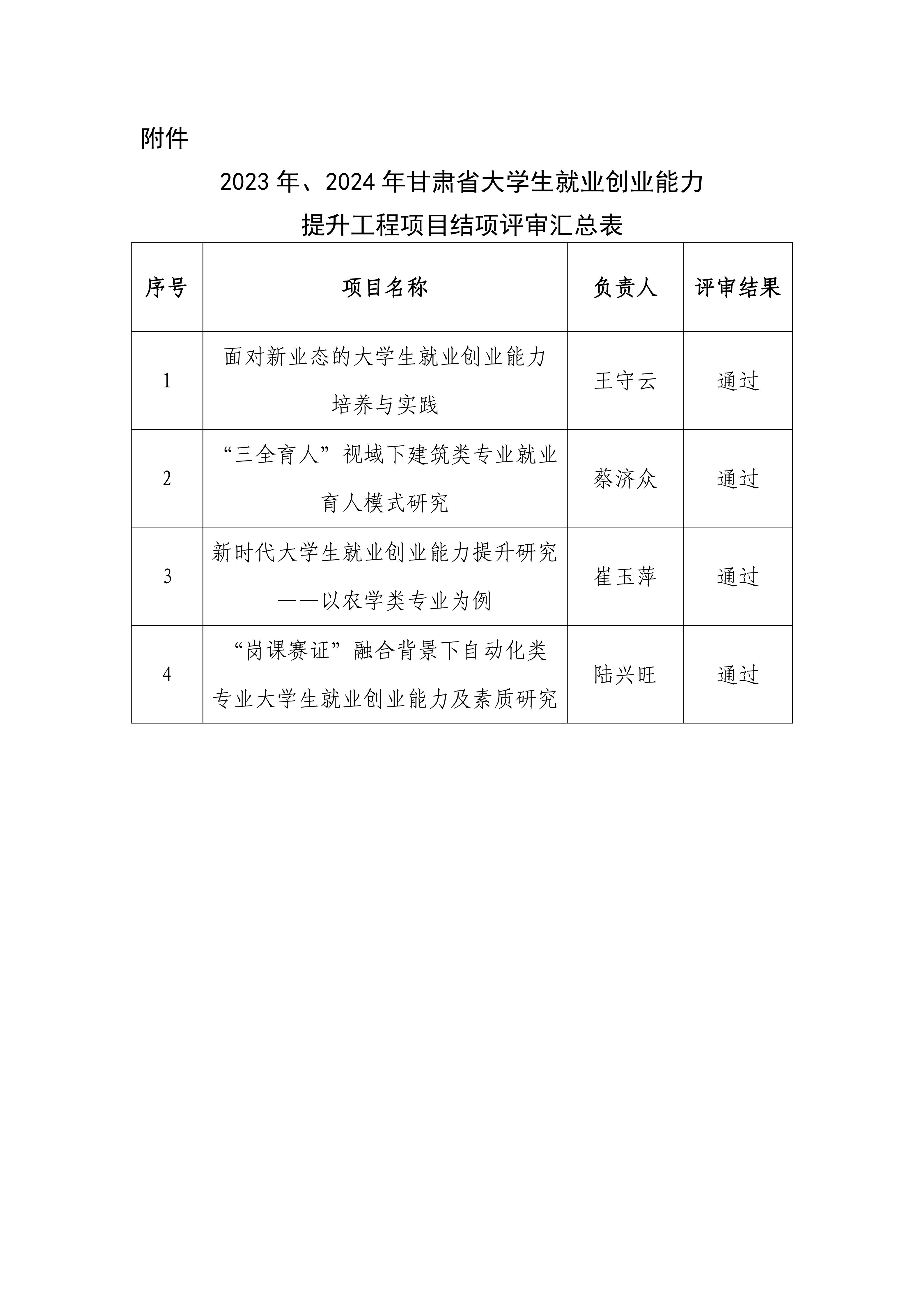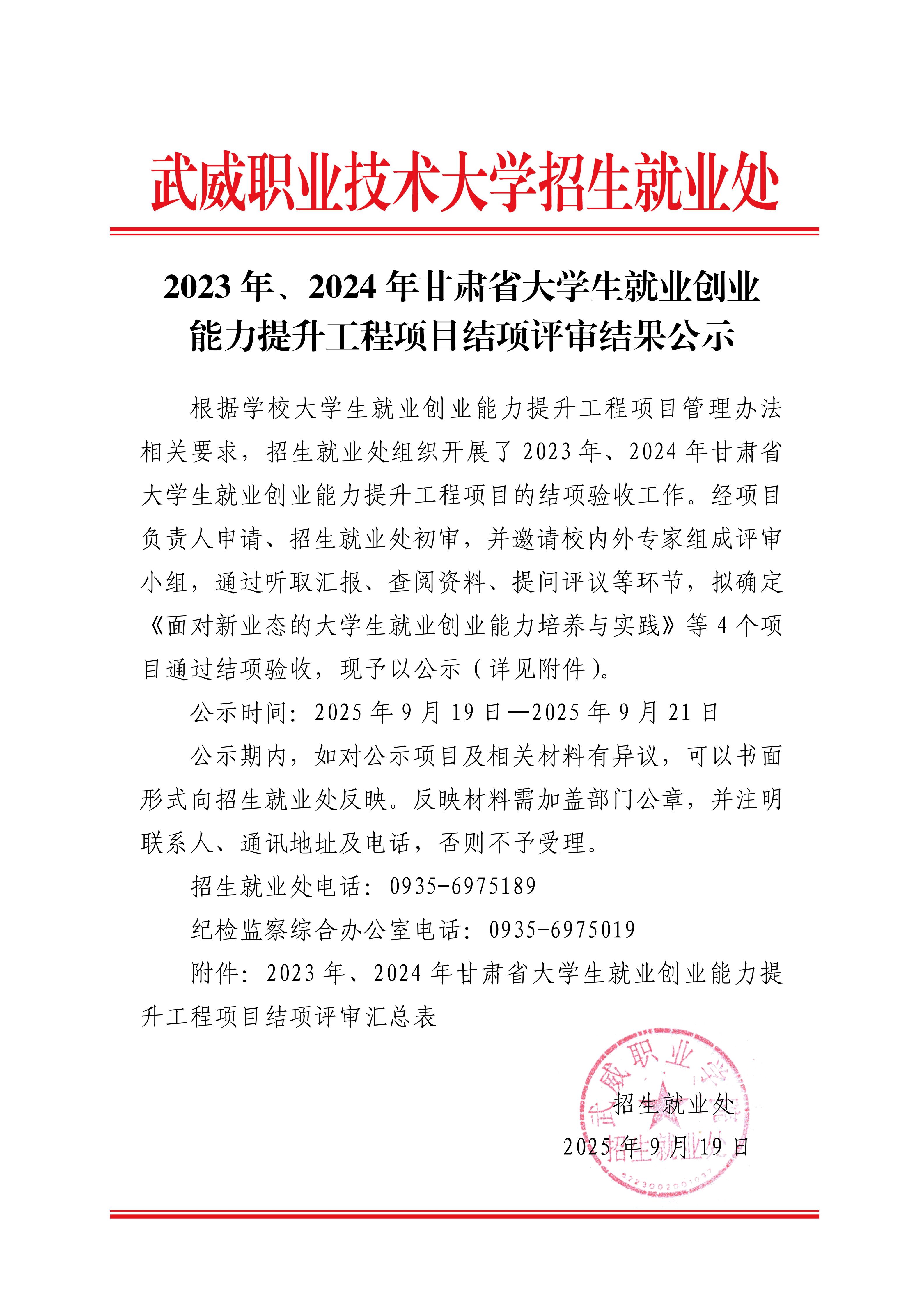 2023年、2024年甘肅省大學生就業創業能力提升工程項目結項評審結果公示
