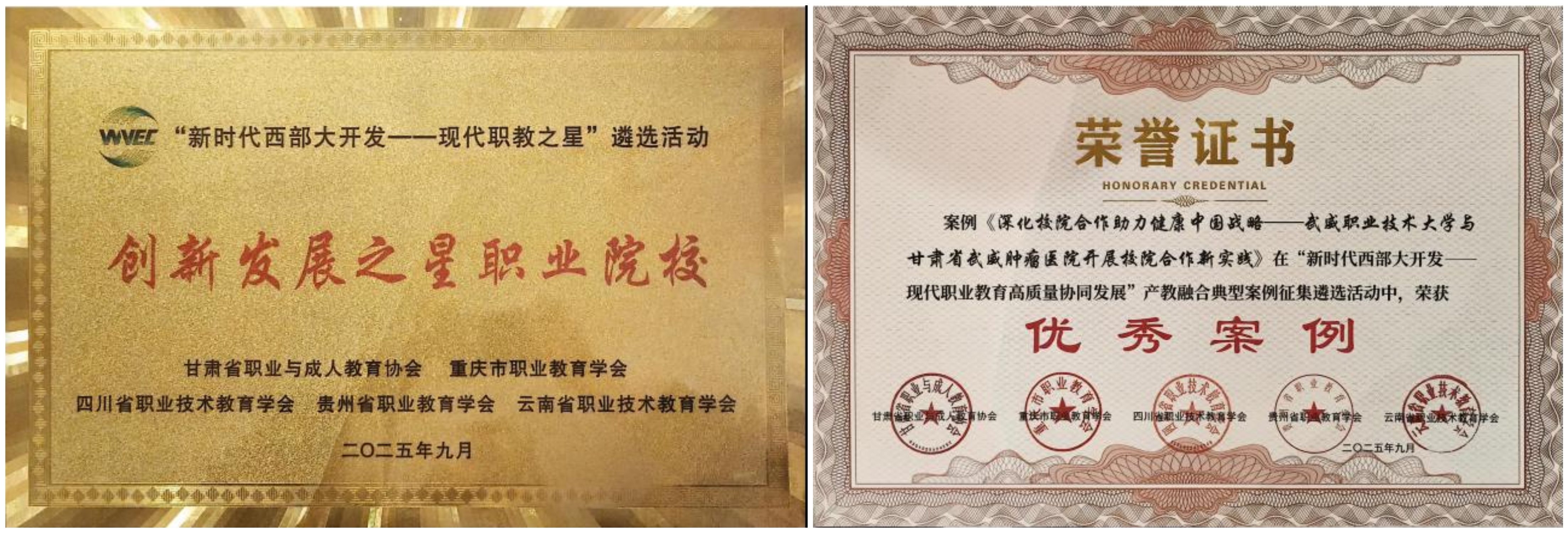 近日,從“新時(shí)代西部大開發(fā)——現(xiàn)代職業(yè)教育高質(zhì)量協(xié)同發(fā)展(蘭州)大會(huì)”上傳來喜訊,武威職業(yè)技術(shù)大學(xué)在甘肅省職業(yè)與成人教育協(xié)會(huì)組織的“新時(shí)代西部大開發(fā)——現(xiàn)代職教之星”和“新時(shí)代西部大開發(fā)——產(chǎn)教融合典型案例”征集遴選活動(dòng)中榮獲兩項(xiàng)重要榮譽(yù)。學(xué)校獲評(píng)“創(chuàng)新發(fā)展之星職業(yè)院校”,《深化校院合作助力健康中國戰(zhàn)略——武威職業(yè)技術(shù)大學(xué)與甘肅省武威腫瘤醫(yī)院開展校院合作新實(shí)踐》榮獲“產(chǎn)教融合典型案例優(yōu)秀案例”。