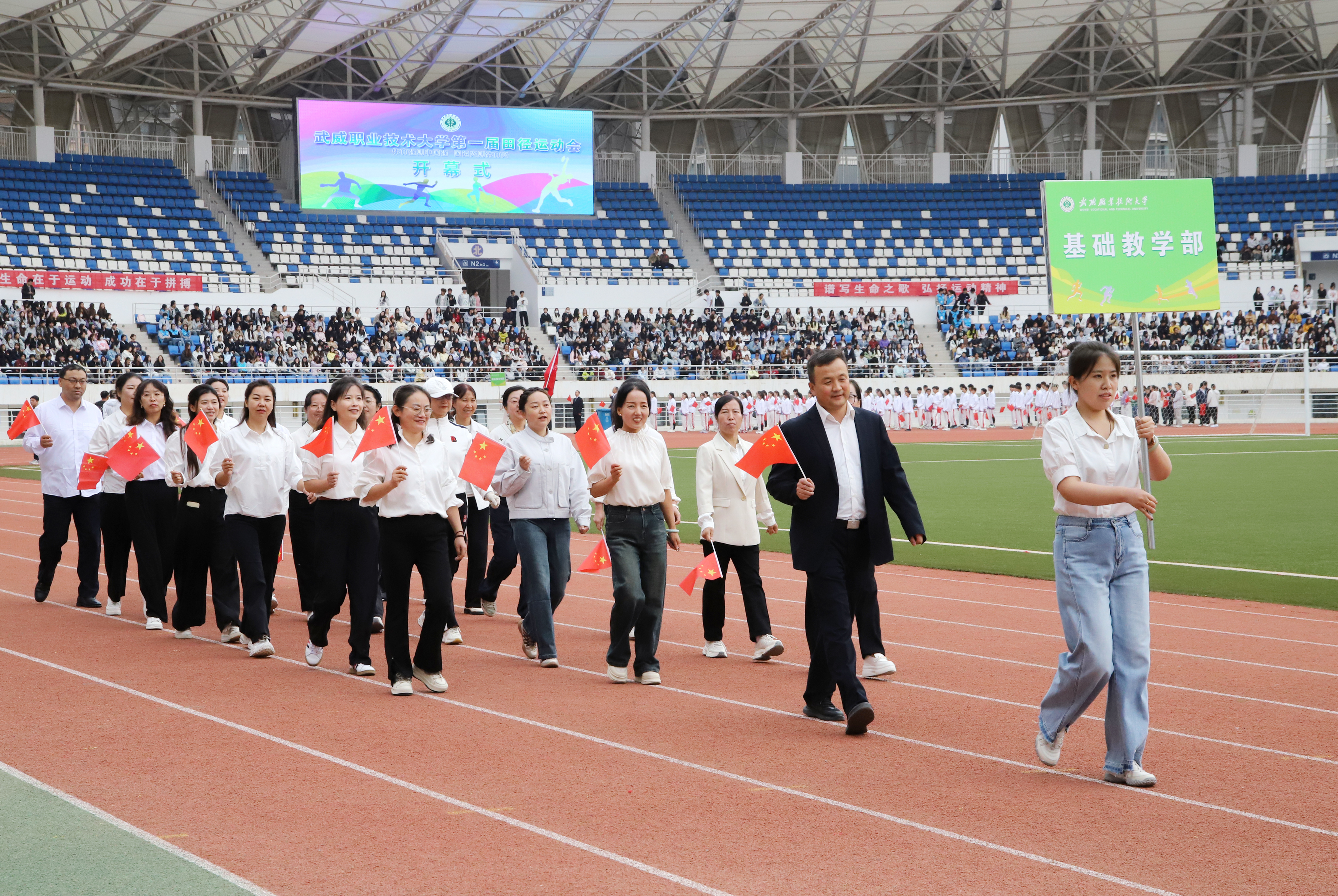 伴隨著激昂的《運動員進行曲》,國旗護衛隊、彩旗隊、裁判員隊伍、各學院方陣依次入場,隊列步伐整齊有力,口號堅定嘹亮,充分展示了師生良好的精神風貌。