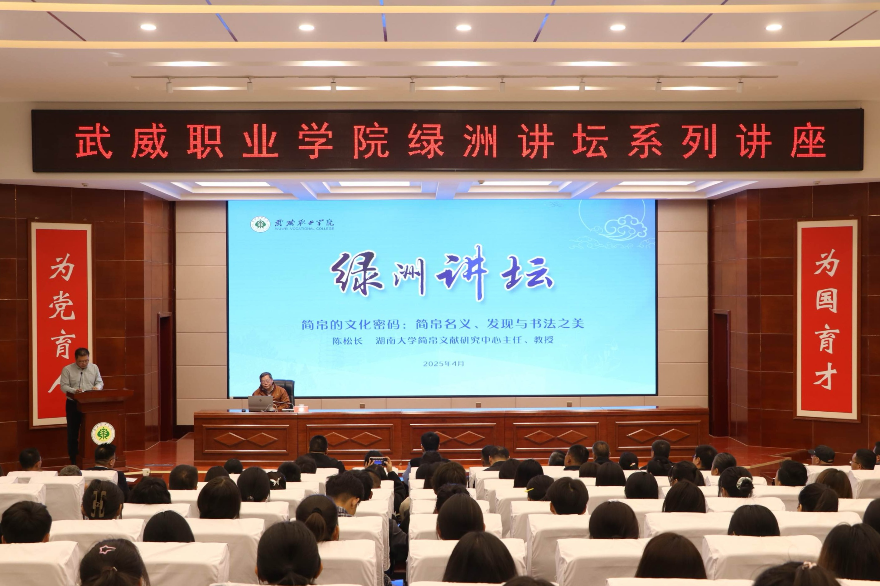 為豐富師生學術視野,深入探究歷史文化的獨特魅力,4月15日,學校特邀湖南大學岳麓書院教授、博士生導師、湖南大學簡帛文獻研究中心和中國簡帛書法藝術研究中心主任陳松長教授,在菁英廳作了“簡帛的文化密碼:簡帛名義、發現與書法之美”專題講座。校長李海軍主持講座,湖南大學師生代表、武威市涼州文化研究院研究人員、學校師生代表、媒體記者共210余人參加。