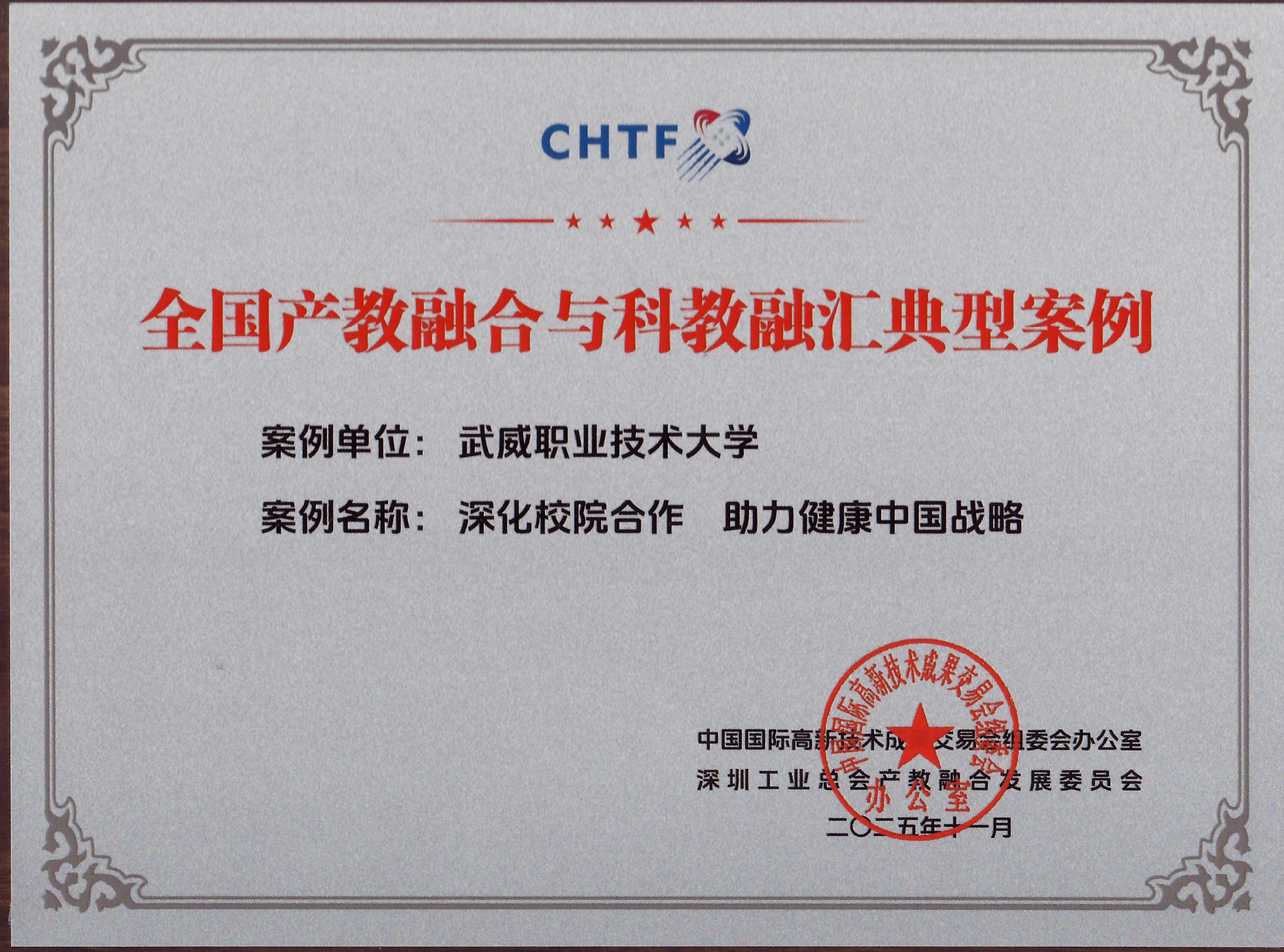 近日,第二十七屆中國國際高新技術(shù)成果交易會組委會公布產(chǎn)教融合與科教融匯典型案例評選結(jié)果,我校報送的《深化校院合作 助力健康中國戰(zhàn)略——武威職業(yè)技術(shù)大學(xué)與甘肅省武威腫瘤醫(yī)院開展校院合作新實(shí)踐》成功入選《全國產(chǎn)教融合與科教融匯典型案例匯編》,標(biāo)志著我校在實(shí)施科教融匯行動,推動健康人才培養(yǎng)實(shí)踐獲得國家級平臺認(rèn)可。