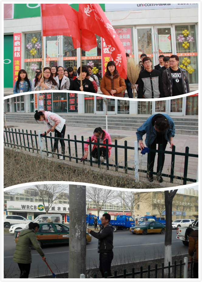 電子信息工程系團總支結合團市委、院團委《關于開展城鄉環境衛生整治青年志愿服務活動的通知》安排,3月3日下午16:30組織20名團員青年在學院北門口道路兩側開展了衛生死角清掃,柵欄清潔,果皮箱清潔,公交站臺清潔,小廣告清理,垃圾清運。學生志愿者盡己所能,服務社會,傳播勞動信念,為建設美好社會貢獻自己的一份微薄力量。