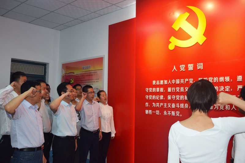 “我志愿加入中國共產黨,擁護黨的綱領,遵守黨的章程……” 全體黨員同志在任陶的帶領下,鄭重地舉起右手,面對鮮紅的黨旗再次莊嚴宣誓。誓詞擲地有聲,鏗鏘有力,讓全院黨員同志得到了一次思想洗禮,一次精神激勵。任陶指出,重溫入黨誓詞,是“兩學一做”學習教育的重要內容,是黨性的再熏陶、再教育,目的在于立起黨員的標桿來,喚起“入黨為什么”“在黨干什么”的重新思考。